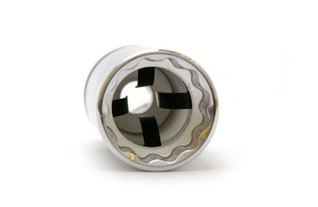 Tändstiftshylsa av kromvanadinstål. Tolvkant, med fjäder för tändstift. Förkromad.